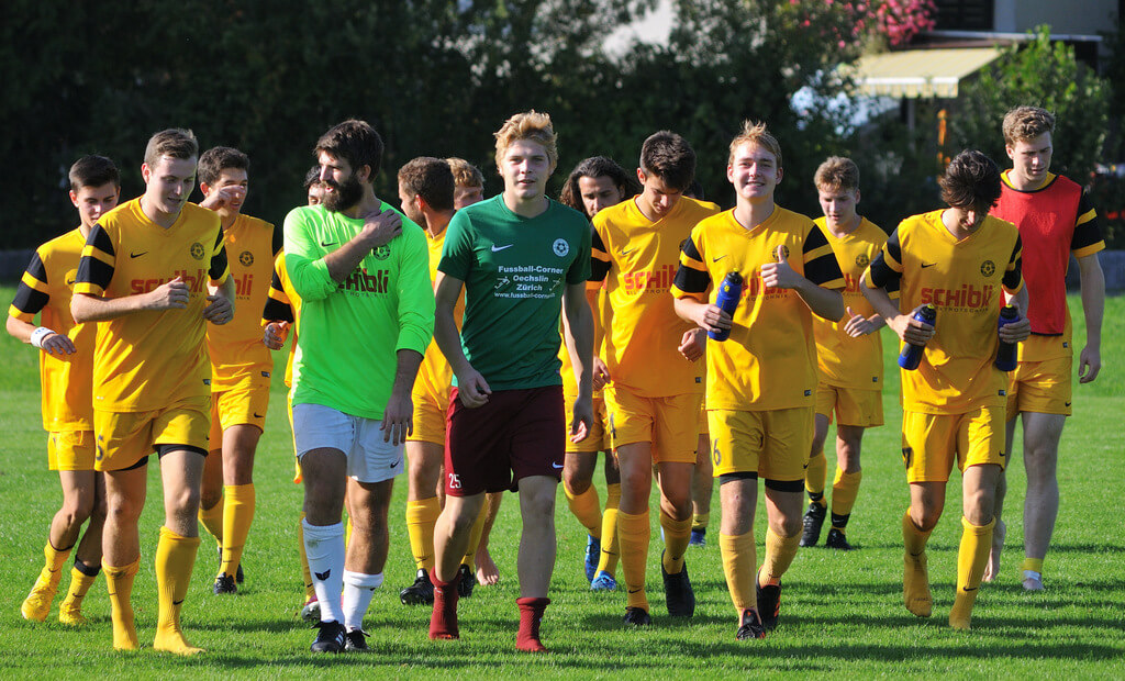 Das Fanionteam vom FC Herrliberg reiste an diesem Sonntag über den Pfannenstiel nach Mönchaltorf und wollte dort unbedingt wieder die vollen Punkte einfahren. Das Spiel begann sehr ausgeglichen, wobei Mönchaltorf durch seine aggressive Spielweise fast mehr vom Spiel hatte. Somit kamen die Gelb-Schwarzen nach einer Viertelstunde eher aus dem Nichts zur frühen Führung. Sturmtank Dangel stand am vorderen Pfosten goldrichtig und verwertete den Corner mit dem Kopf zum 0:1. Ab diesem Zeitpunkt kam dann Herrliberg definitiv besser ins Spiel. Nur wenige Minuten später blieb es Captain Ledergerber verwehrt, die Führung weiterauszubauen. Er scheiterte alleine vor dem gegnerischen Torhüter. Nach ihm scheiterten auch Lustgarten und Dimitrovski mit ihren jeweiligen Abschlussversuchen. Kurz vor dem Pausenpfiff lenkte Ledergerber eine Daull-Flanke entscheidend zu Oertig ab, welcher zur wichtigen 0:2-Führung treffen konnte. Mit diesem verdienten Resultat ging es dann auch in die Pause.